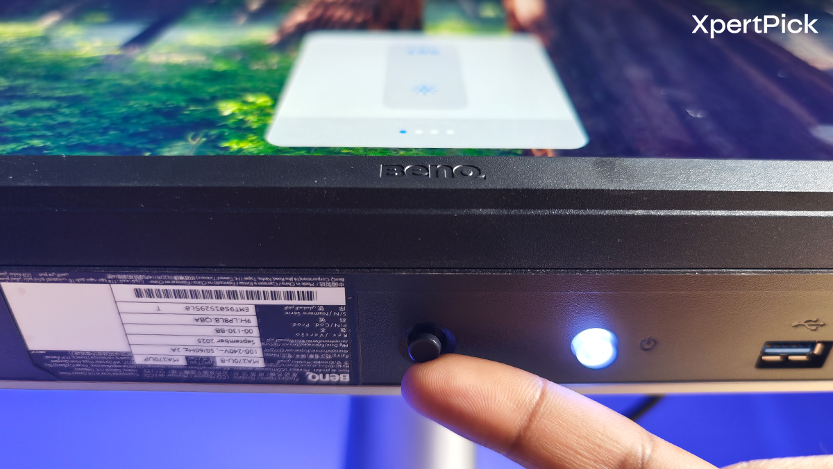 BenQ has also added a few small touches that can prove useful in daily setups. A soft pad on the upper part of the base provides a resting place for a MacBook at an angle, potentially helping to keep the desk more organised. The physical controls are straightforward, with a power button and OSD joystick located beneath the screen for quick access to brightness, volume, and input settings.