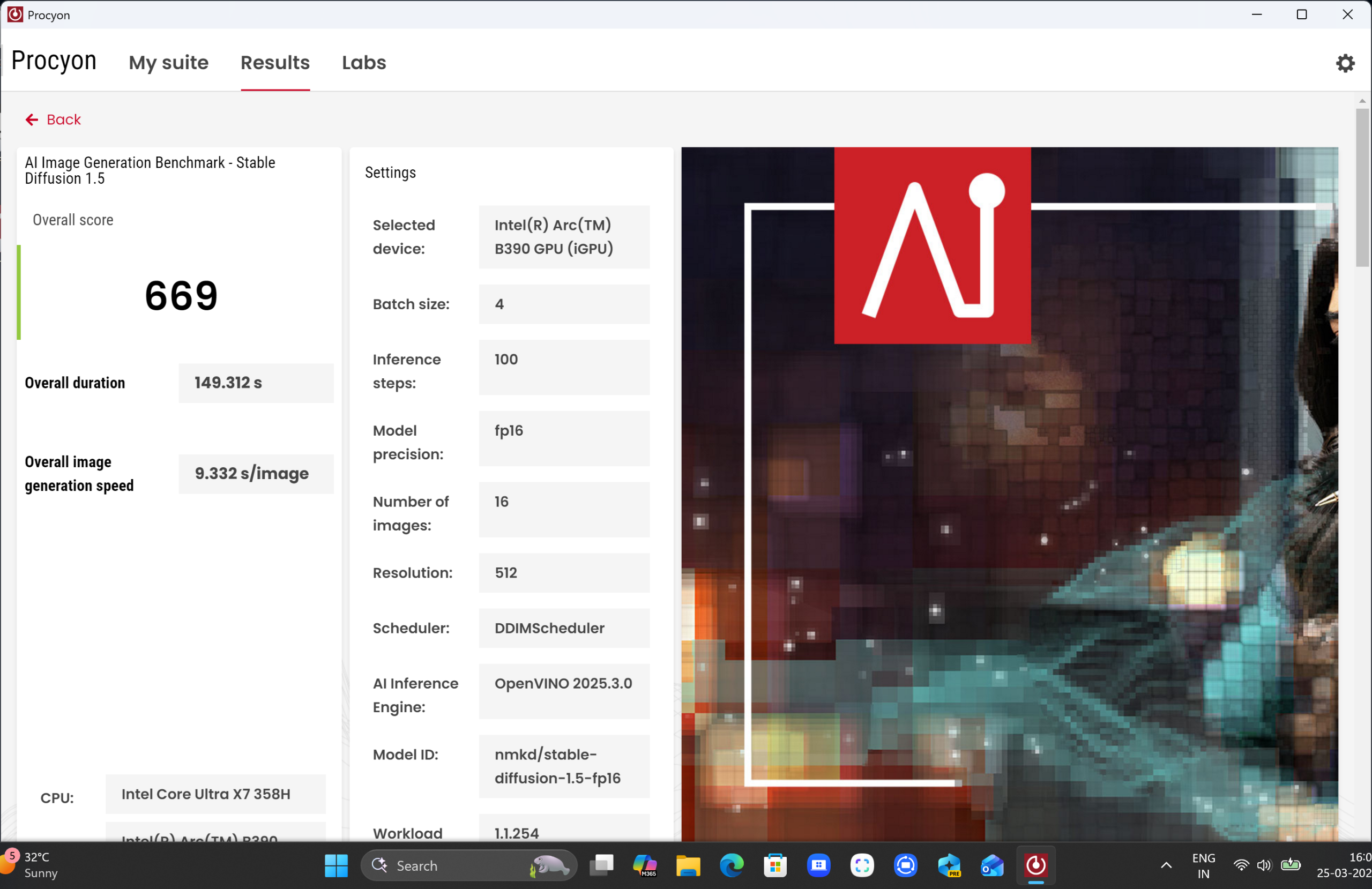 When it comes to AI image generation, Intel takes the lead by a good margin, scoring 669 in the AI image generation benchmark, while the Asus Zenbook S16 scores just 182 points.