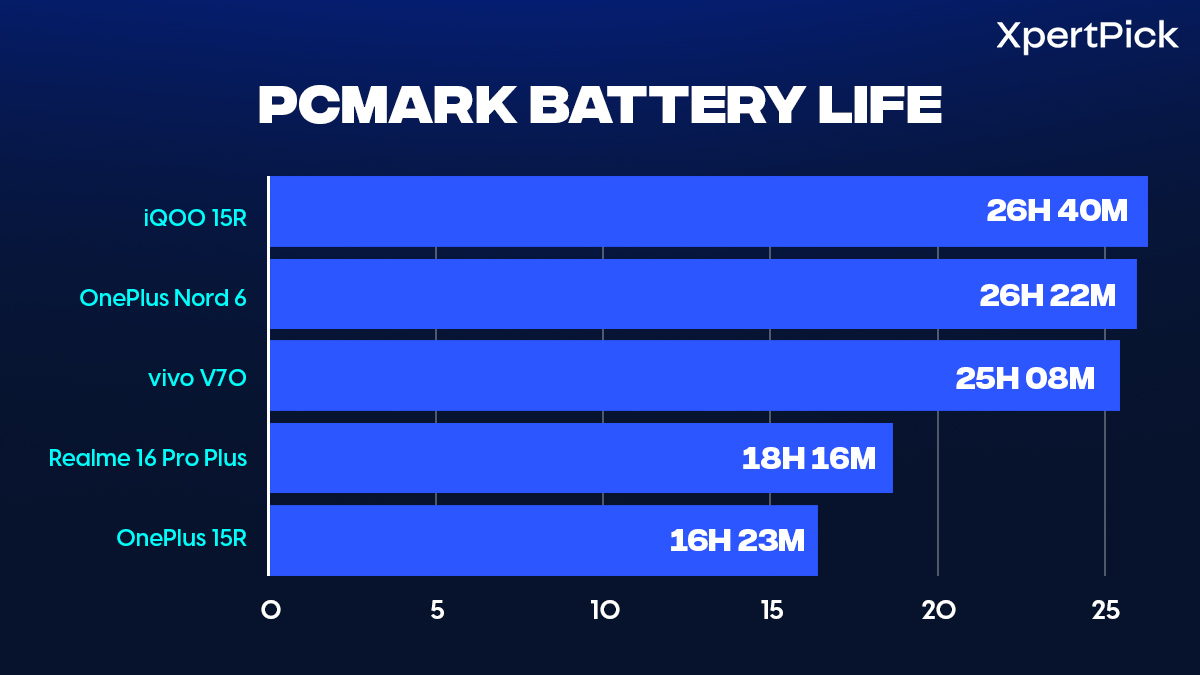 Lastly, the OnePlus 15R ends up being the least compelling option for battery-focused buyers. Its tuning clearly favours performance over endurance, and that trade-off is hard to ignore in this segment.