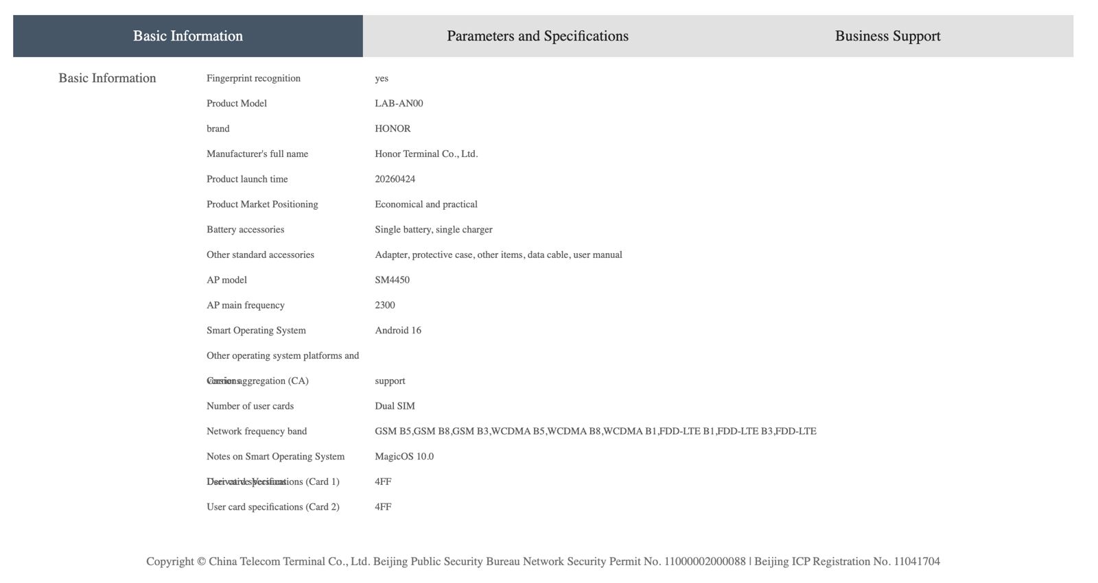 As per the China Telecom listing, the Honor Play 80 Plus (model number: LAB-AN00) will feature a 6.61-inch LCD panel with an HD+ resolution of 720 x 1604 pixels. The phone runs on Android 16 with Honor’s MagicOS 10 skin on top.