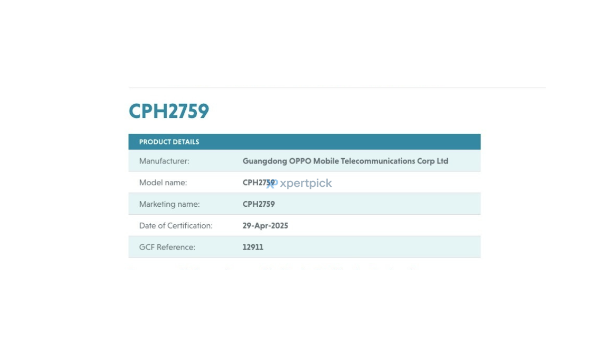 - The CPH2759 Oppo phone has also received GCF certification, but its final moniker is not known yet.