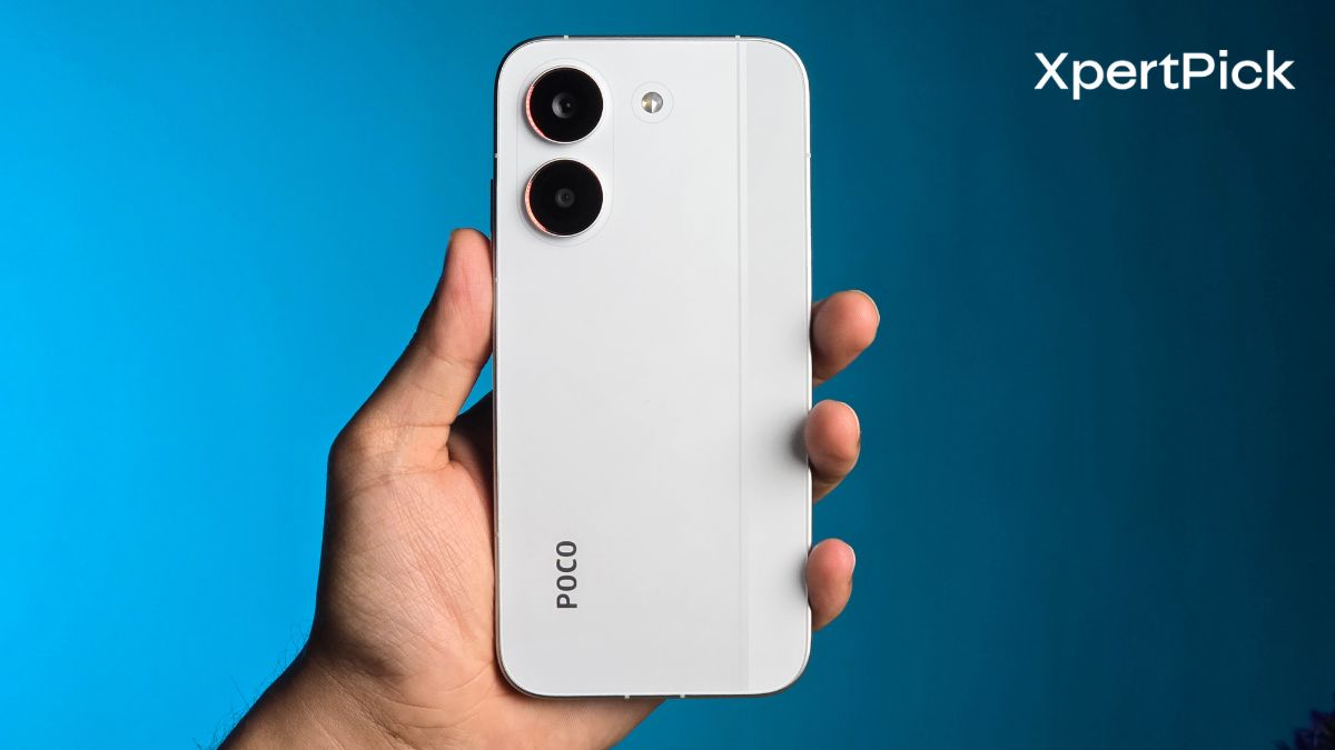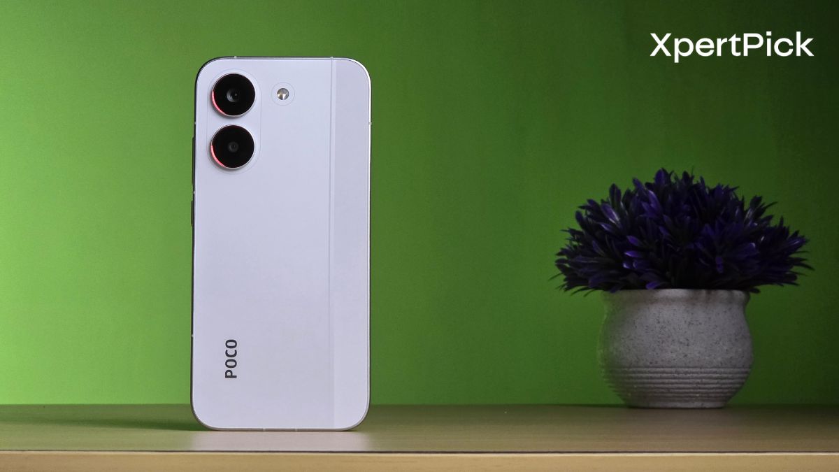 POCO has clearly toned things down this time. The loud, flashy racing-stripe aesthetic from older models is gone, replaced by a cleaner and more restrained look. The design feels more minimal overall, with a sleek pill-shaped camera module on the back. The phone is available in Mint Green, White, and Black, with the White option standing out as the sharpest and cleanest of the three.