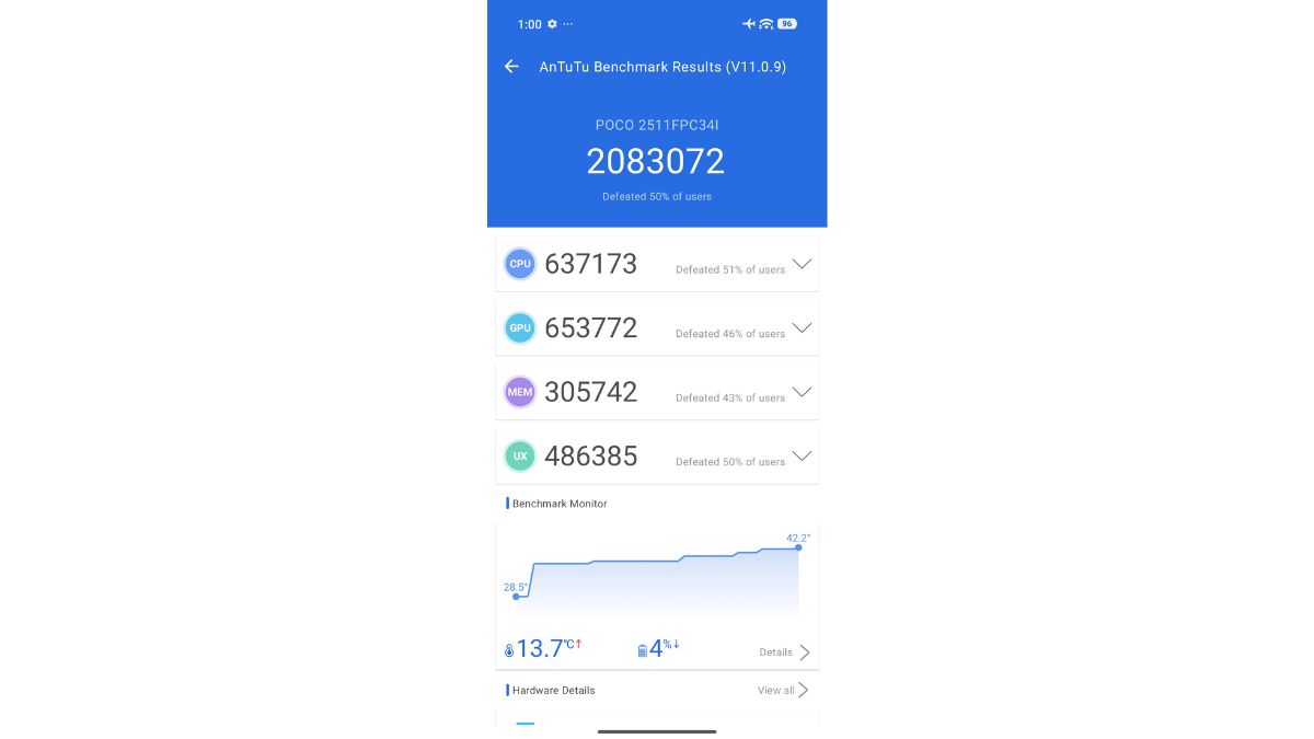 What this means is that the POCO X8 Pro emerges as the most powerful of the three and the second-best when it comes to overall thermal stability. Considering that its raw performance figures are almost double those of its competition, its second-place finish in thermal stability becomes even more impressive.