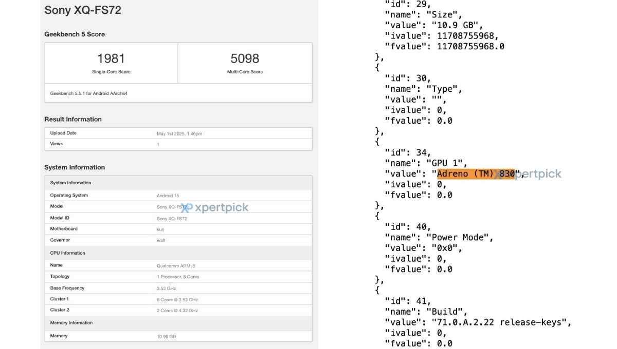 - The Geekbench listings of the upcoming Sony XQ-FS54 and XQ-FS72 phones have revealed that they are equipped with the Snapdragon 8 Elite. These appeared to be different country variants of the alleged Sony Xperia 1 VII.